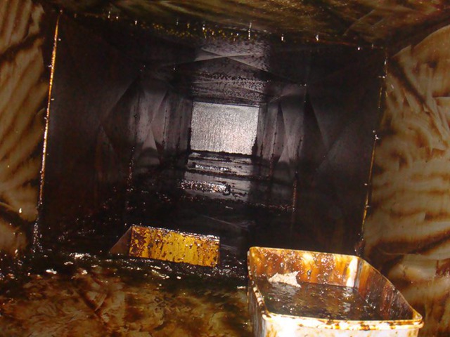 煙道、煙罩常年處于高溫工作環境,油煙氣化形成積油、積炭或油膩的膠狀物,這三種物質非常容易引起火災。若不經常清洗,積油越積越多 ,順著煙罩自然倒流,不僅影響飯菜質量,而且還有損酒店信譽。同時,煙道中易寄生老鼠、蟑螂,不符合國家衛生標準,油膩膠狀物長期扒附在金屬表面,增加煙道和風機工作負荷,還會腐蝕金屬材料,大地縮短煙道及風機使用壽命。